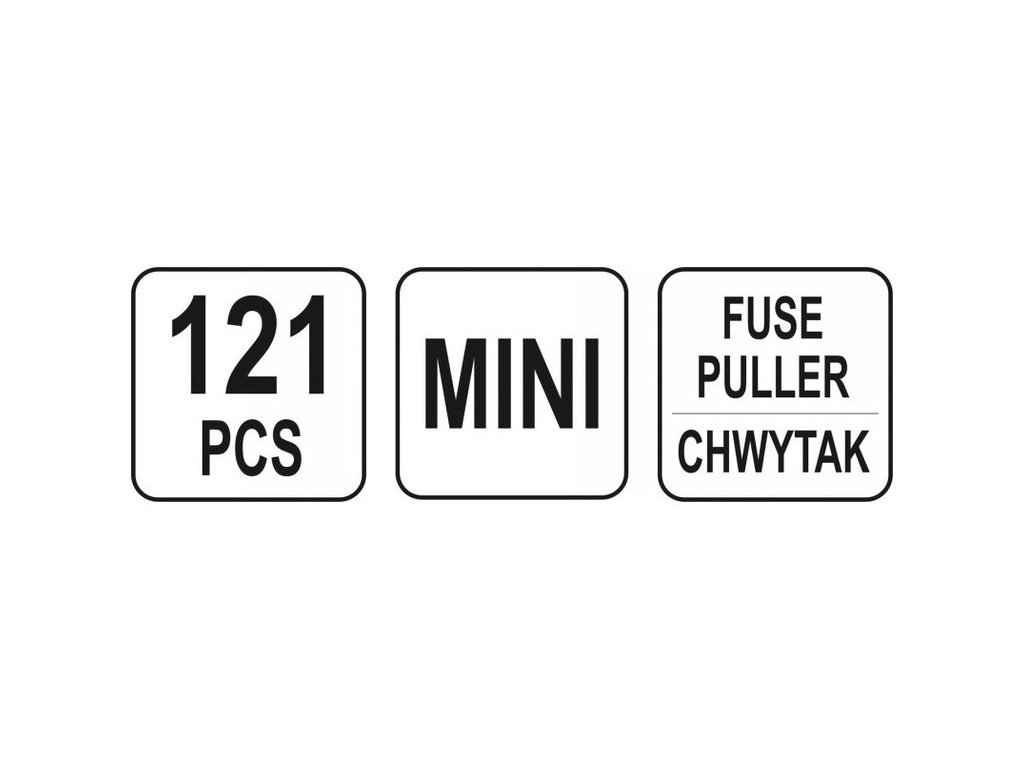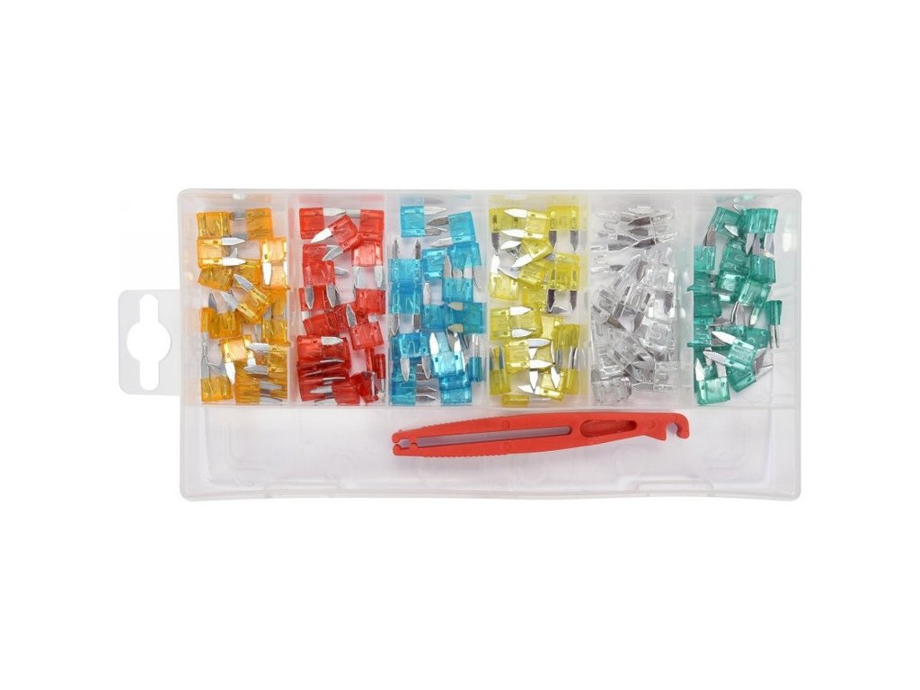 Obsah sady: • 20 ks: 5 A • 20 ks: 10 A • 20 ks: 15 A • 20 ks: 20 A • 20 ks: 25 A • 20 ks: 30 A • 1 ks: spona na vytiahnutie poistky