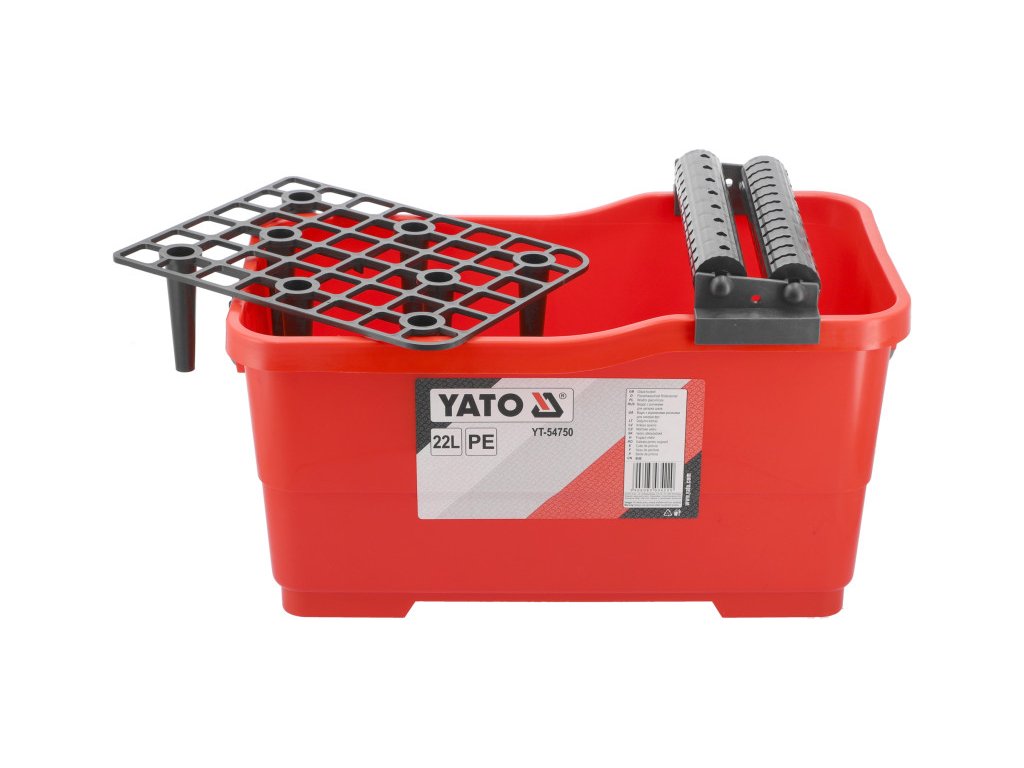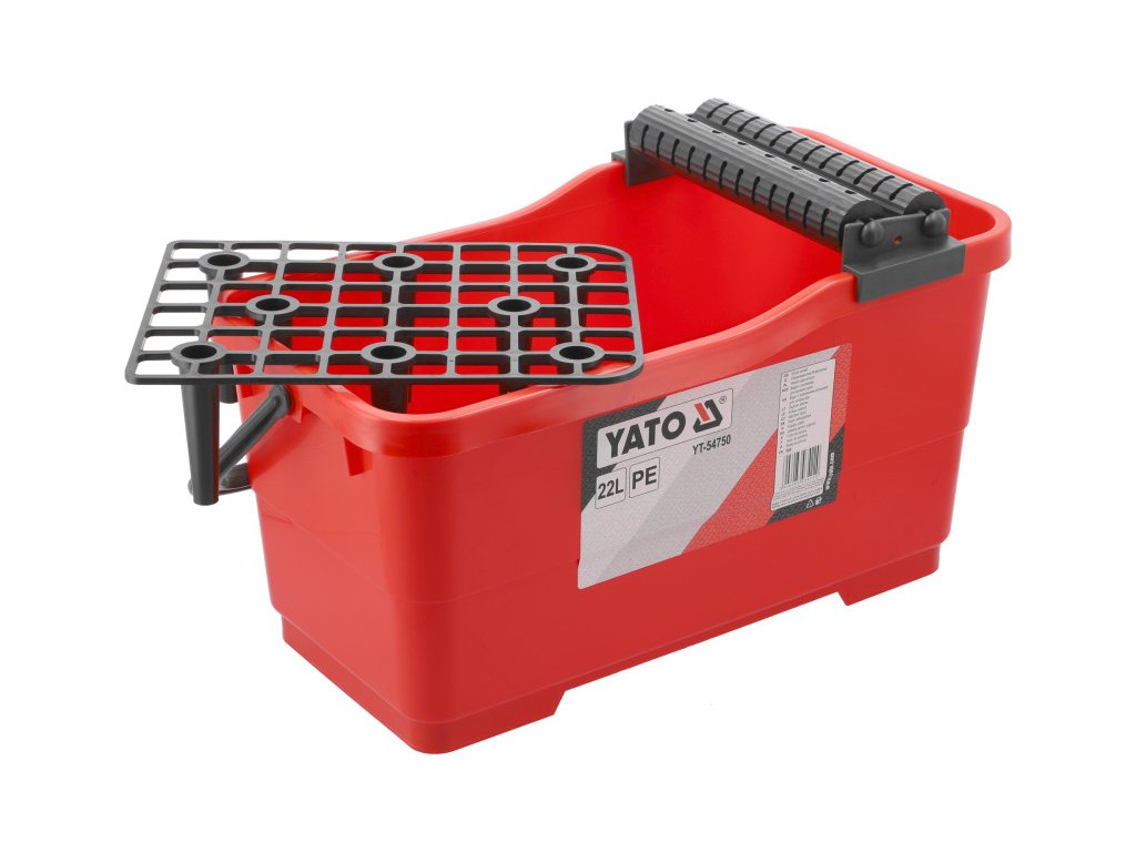 YATO márkájú vödör 22 literes kapacitással, melyet burkolási valamint javítási és építési munkákra terveztek