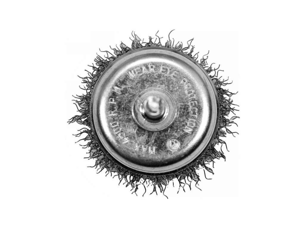 Pörgő kefe, amelyet fémfelületek tisztítására és polírozására, festékbevonatok, valamint rozsda eltávolítására és szerszámok tisztítására terveztek, csiszológép használatával.