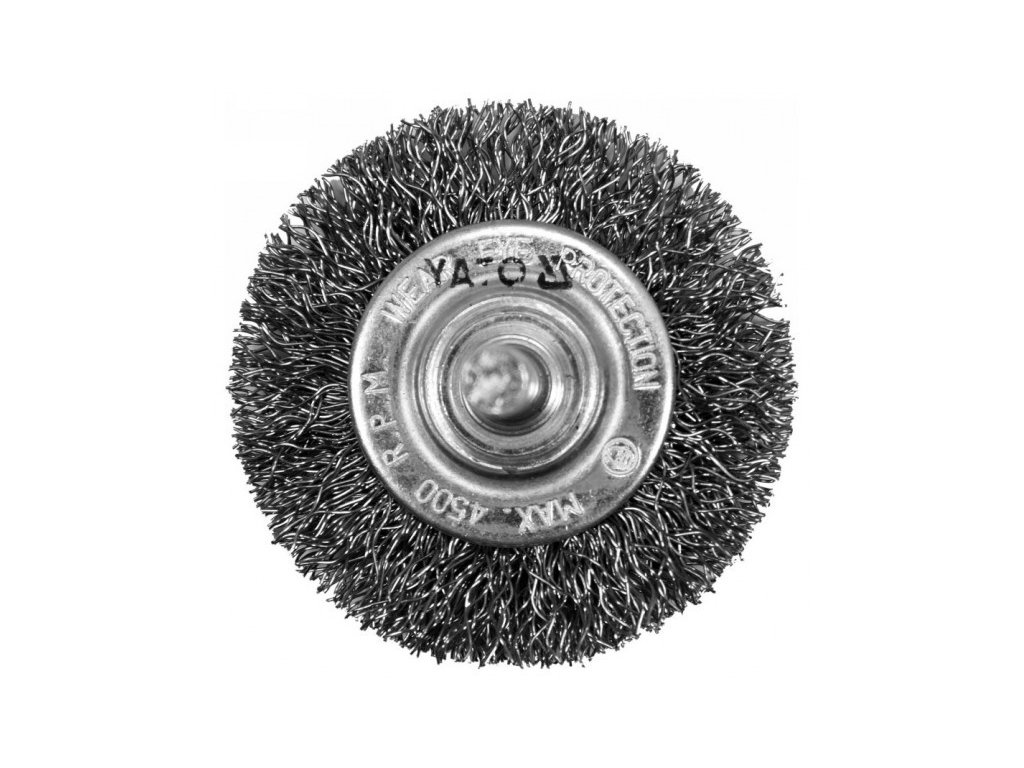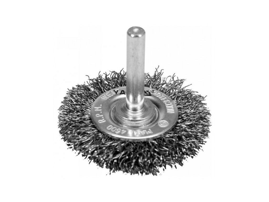 Rotációs kefe, melyet fémfelületek tisztítására és polírozására, festékrétegek eltávolítására, valamint rozsda és szerszámok tisztítására terveztek, csiszológép használatával.