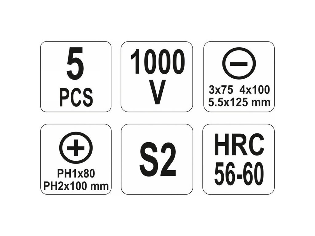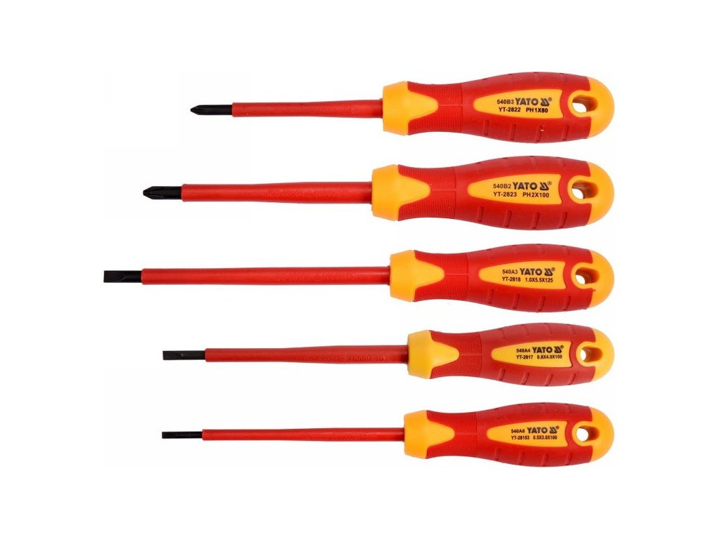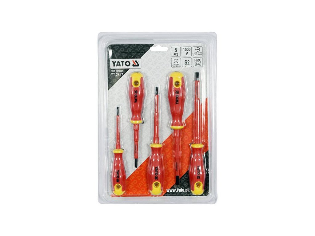 YT-2827 5 részes csavarhúzó készlet VDE szigeteléssel, tartós S2 acélból készült, HRC keménységgel 56-60.