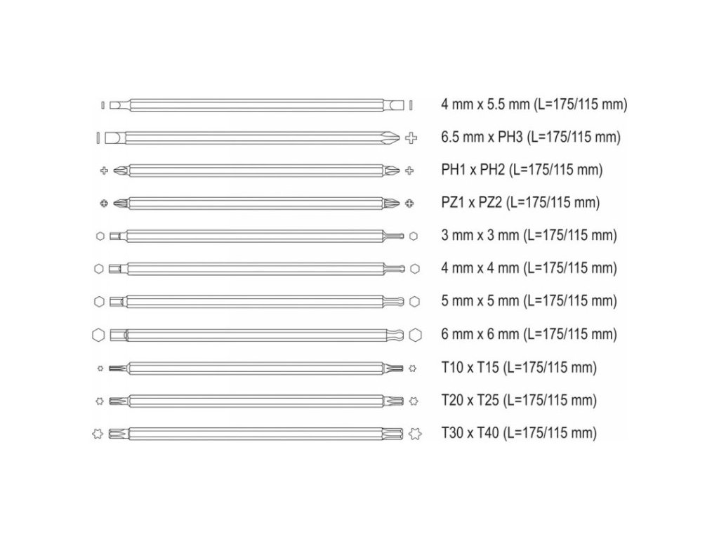 Sada skrutkovačov YATO s obojstrannou stopkou, 12 dielov