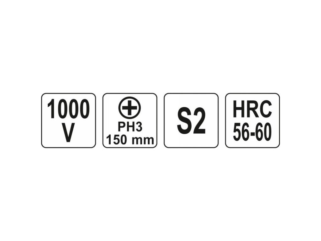Keresztfejű csavarhúzó YT-2824 VDE szigeteléssel, tartós S2 acélból készült, keménységgel HRC 56-60.