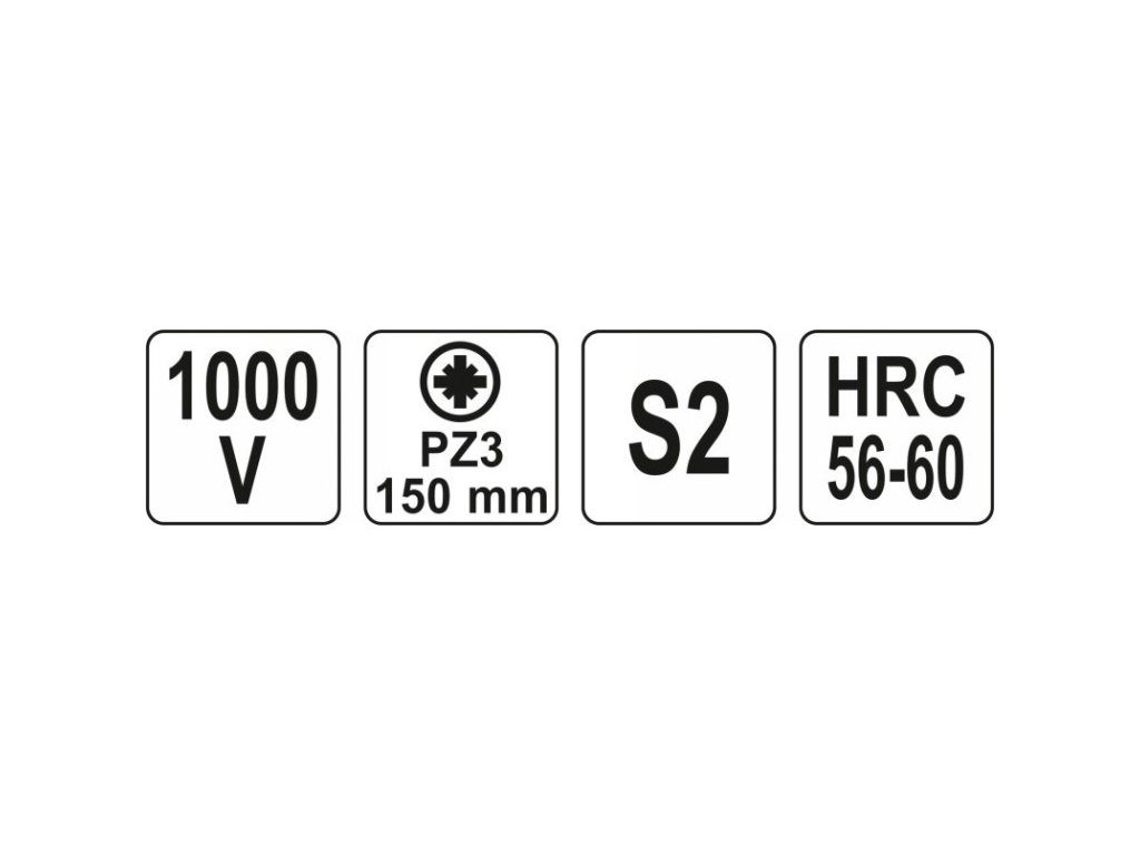 Keresztfejes csavarhúzó YT-28263 VDE szigeteléssel, tartós S2 acélból készült, HRC 56-60 keménységgel.