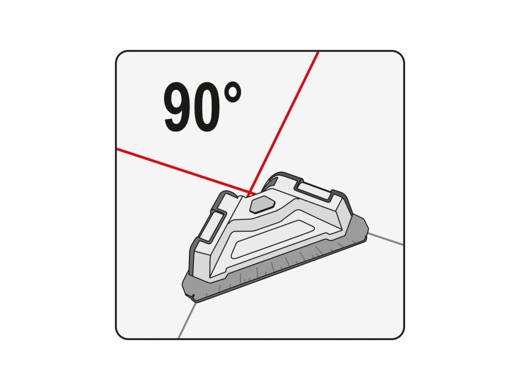 - két piros, jól látható vonalat bocsát ki, amelyek pontosan meghatározzák a 90°-os szöget