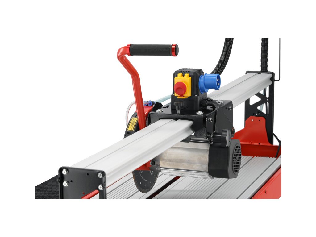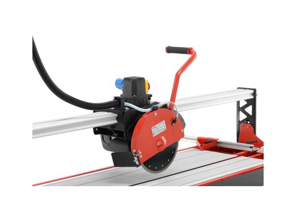 Útmutató sín és lézer mutatóval ellátott asztali fűrész, nedves vágásra kialakítva gyémánt korongokkal kerámia anyagok - csempe, mázas csempe, porcelán mázas csempe, terrakotta - vágására. Robusztus asztal nagy munkafelülettel és egy kiegészítő asztallappal, amely lehetővé teszi nagy formátumú csempék vágását akár 1200 x 600 mm maximális méretben.