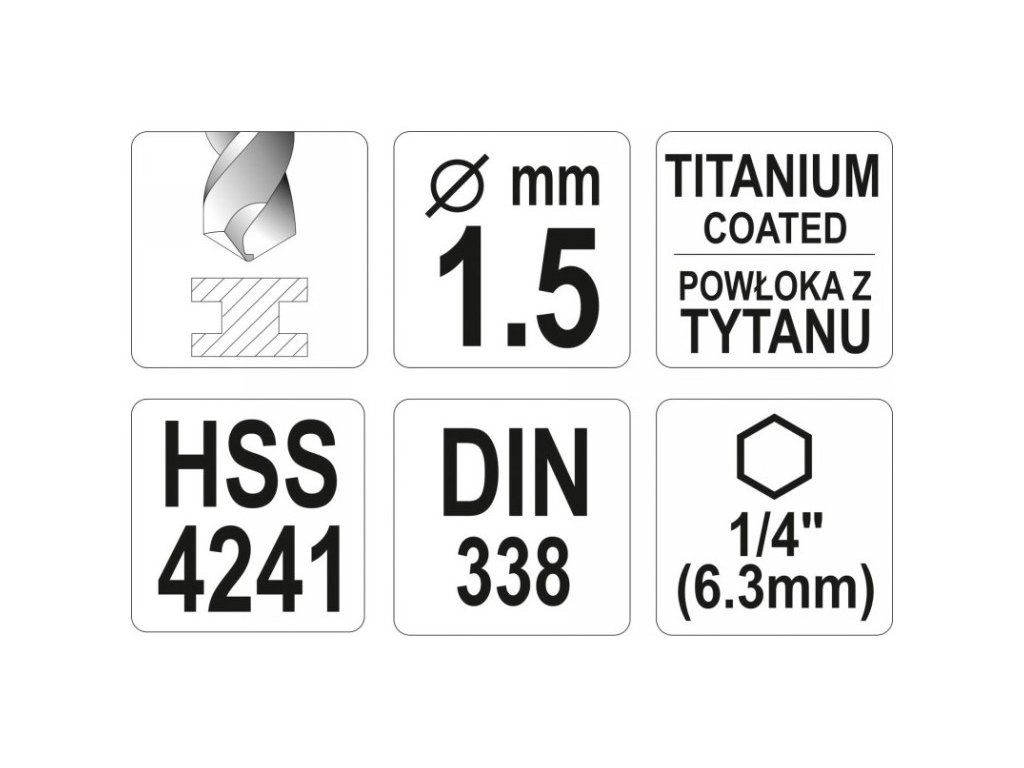 Vŕtačka YATO 1,5 x 63/18 mm HSS-TiN bit upnutím