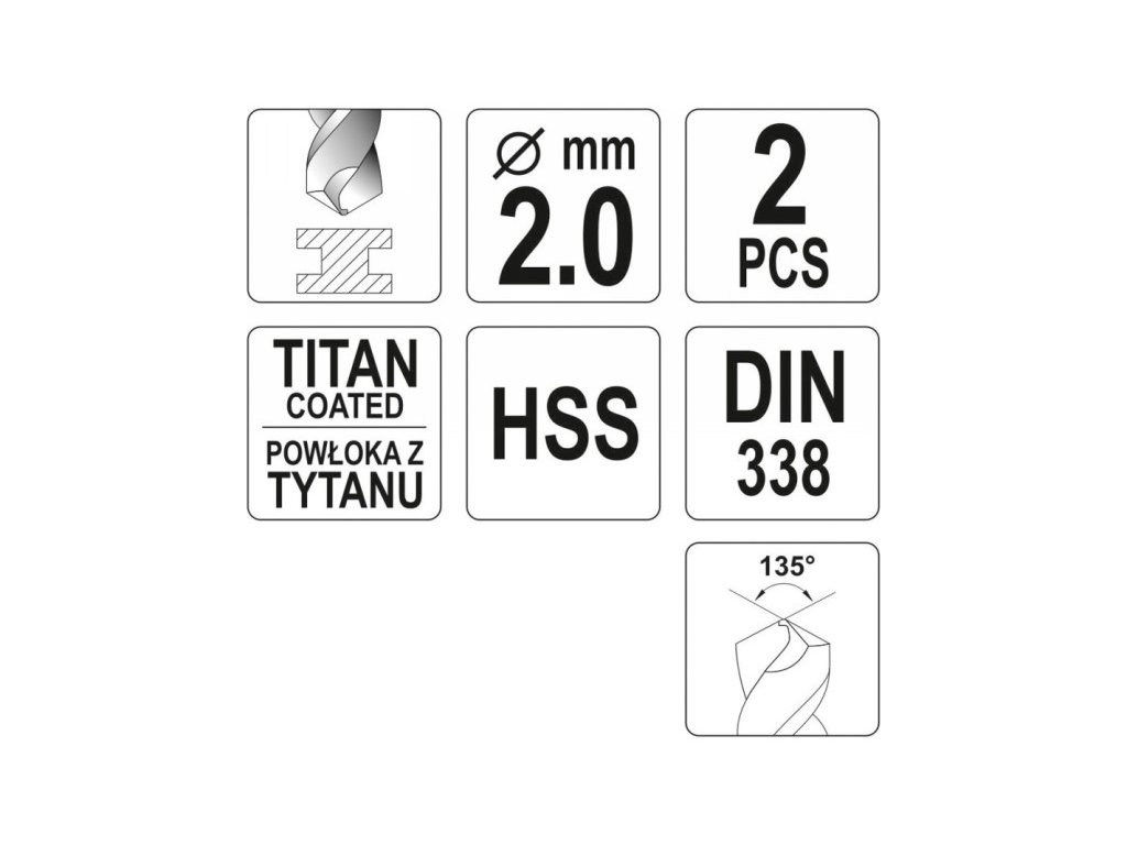 YATO špirálový vrták 2,0 x 49/24 mm HSS-TiN (2 db)