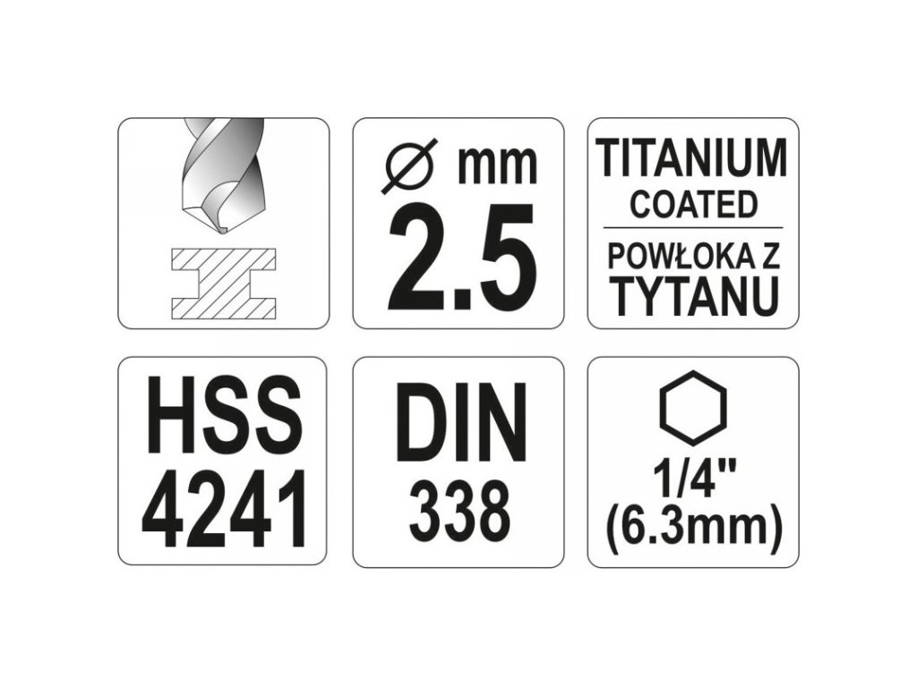 YATO špirálový vrták 2,5 x 80/30 mm HSS-TiN bit upnutím