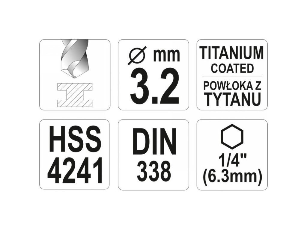 YATO špirálový vrták 3,2 x 85/36 mm HSS-TiN bit upnutím
