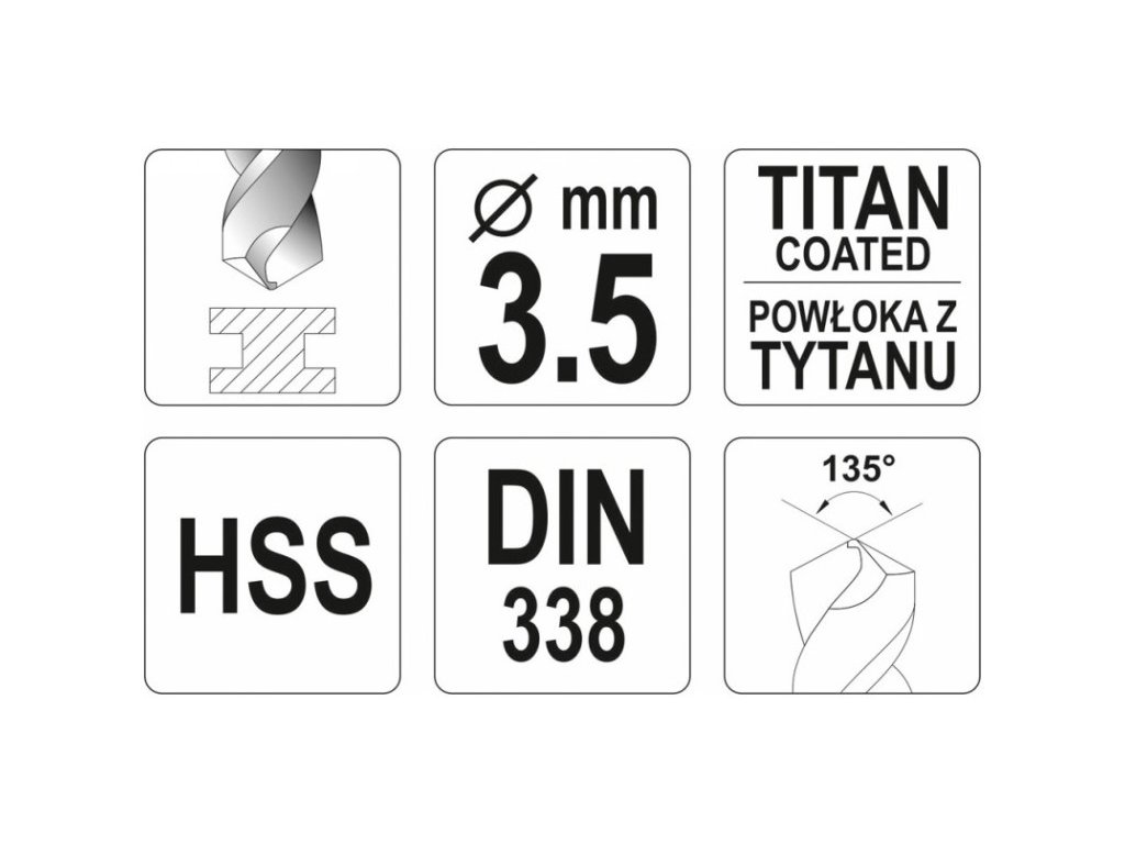 YATO špirálový vrták 3,5 x 70/39 mm HSS-TiN