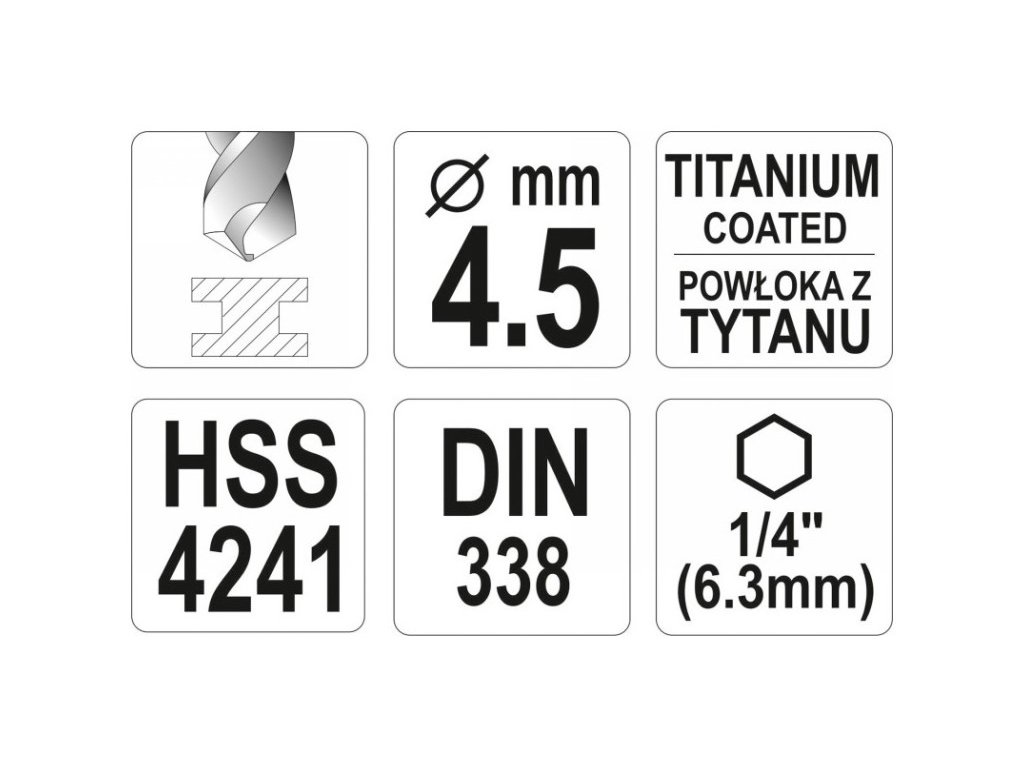 YATO špirálový vrták 4,5 x 100/47 mm HSS-TiN s upínaním