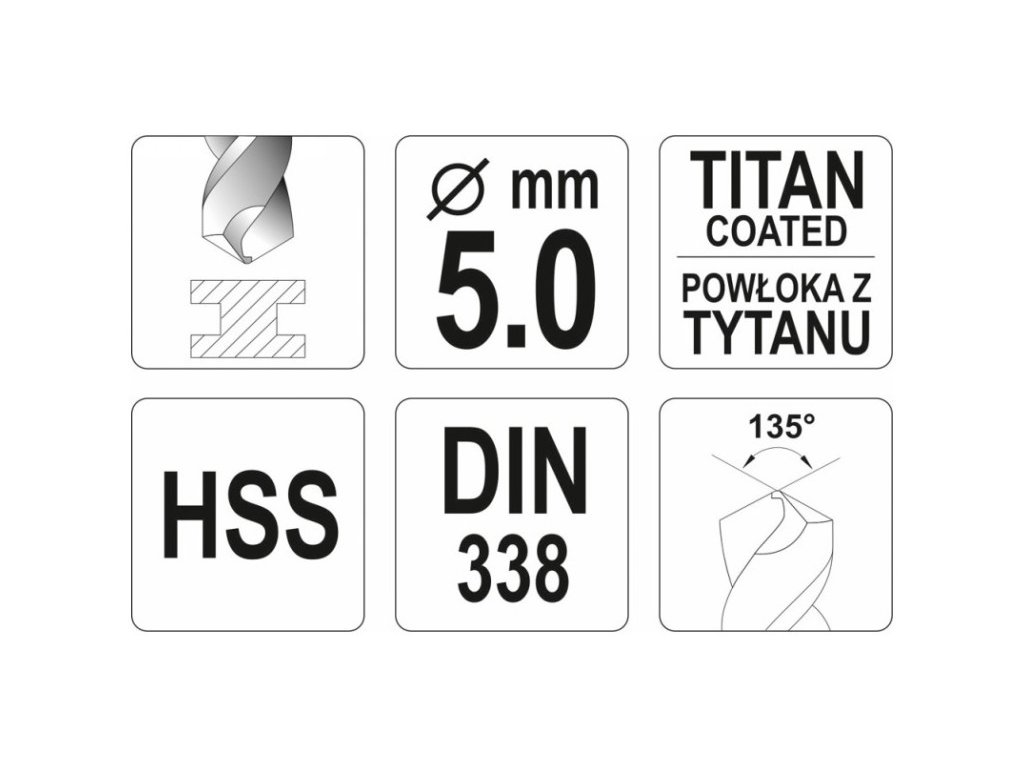 YATO špirálový vrták 5,0 x 86/52 mm HSS-TiN