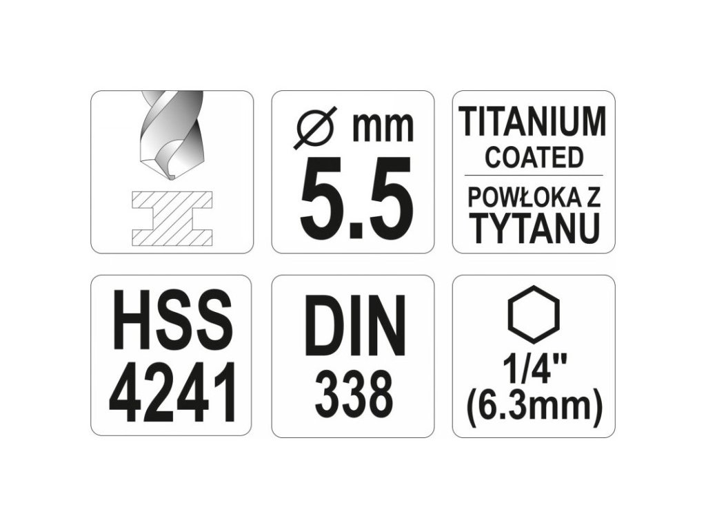 Vŕtačka YATO 5,5 x 113/57 mm HSS-TiN bit