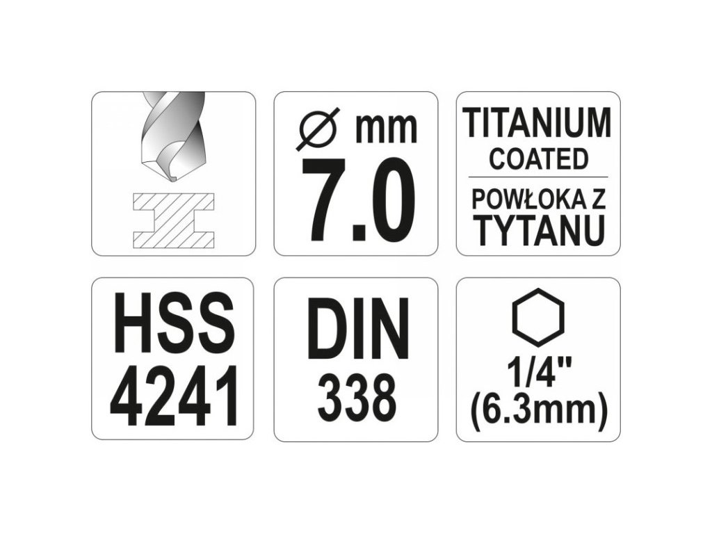 Vŕtačka YATO 7,0 x 109/69 mm HSS-TiN bit