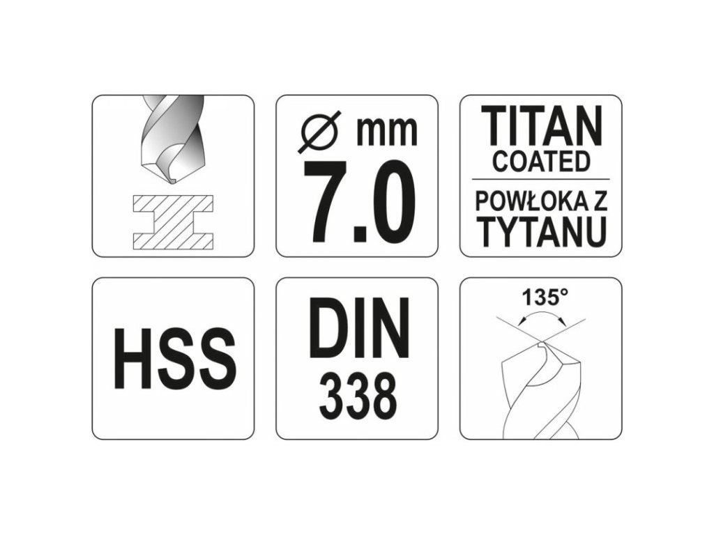 YATO špirálový vrták 7,0 x 109/69 mm HSS-TiN