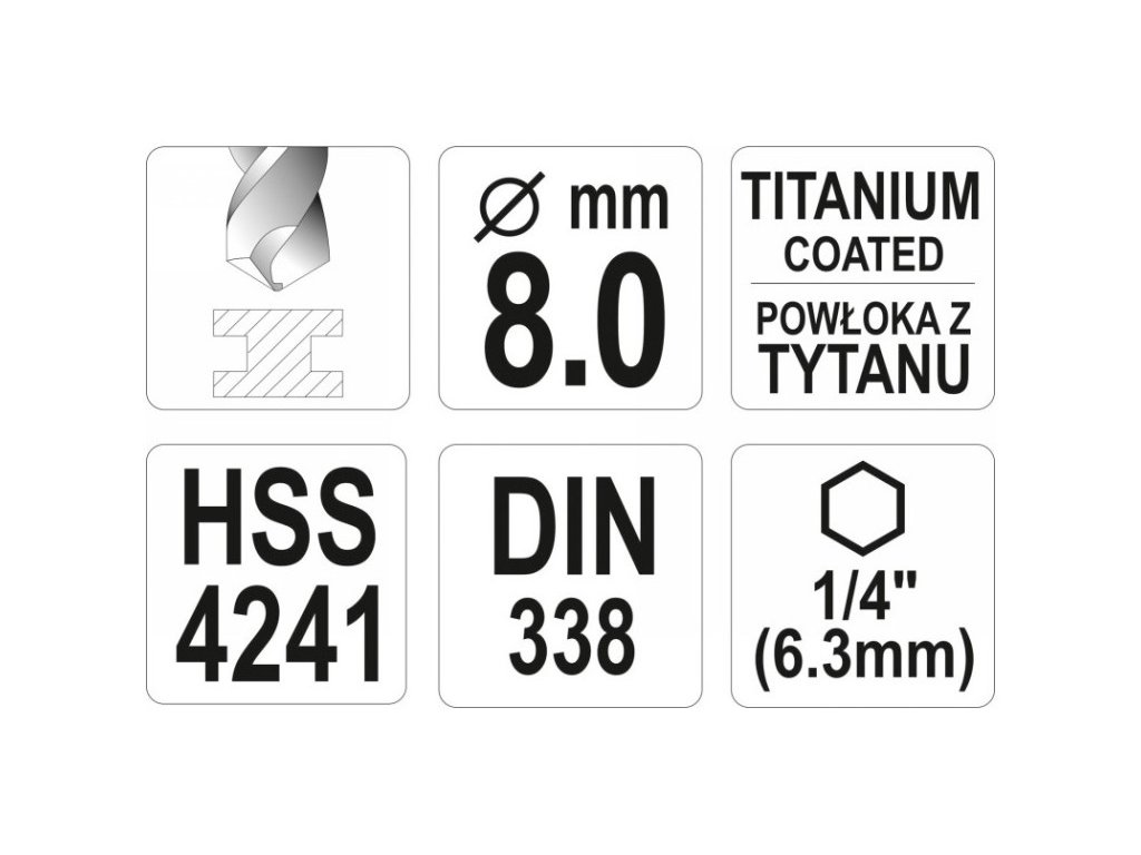 HSS-TiN bit YATO špirálový vrták 8,0 x 117/75 mm
