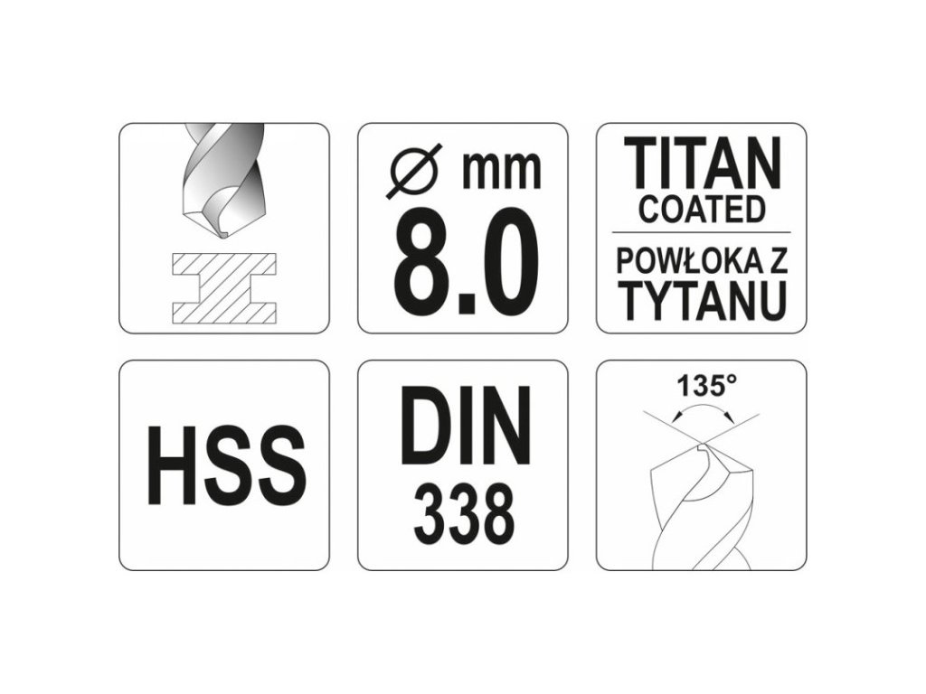YATO špirálový vrták 8,0 x 117/75 mm HSS-TiN