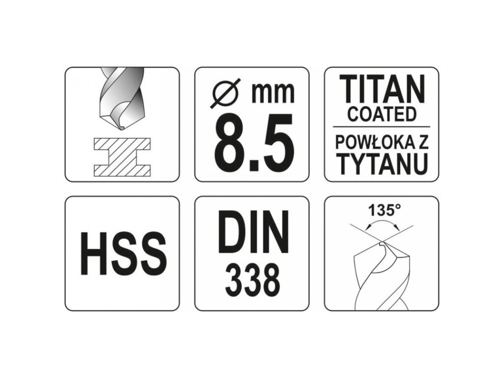 YATO špirálový vrták 8,5 x 117/75 mm HSS-TiN