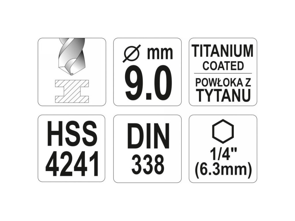 Vrták YATO 9,0 x 125/81 mm HSS-TiN bit