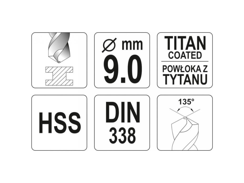 YATO špirálový vrták 9,0 x 125/81 mm HSS-TiN