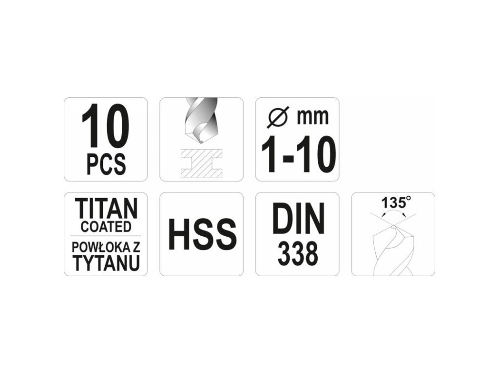 YATO Sada skrutkových vrtákov 10 dielov 1-10 mm HSS-TiN