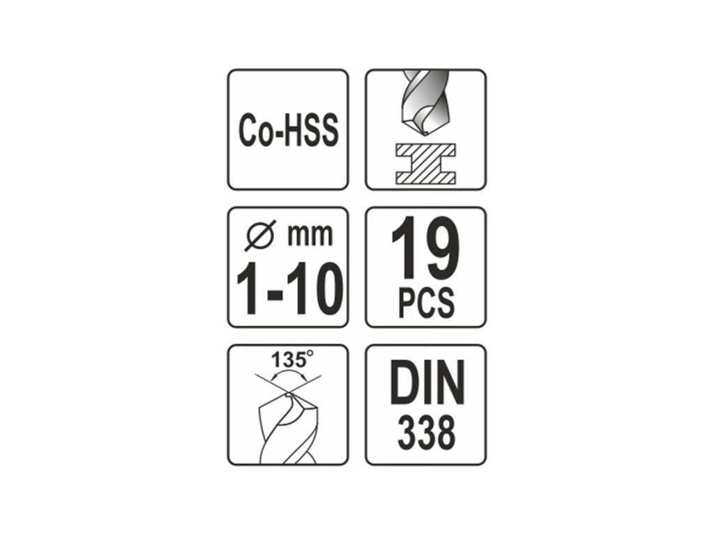 Sada vrtákov na kov 19ks HSS-COBALT 1-10mm