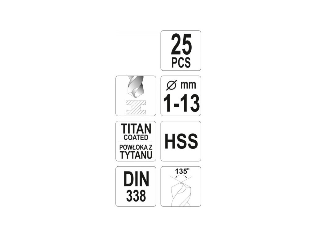 YATO Sada skrutkových vrtákov 25 kusov 1-13 mm HSS-TiN