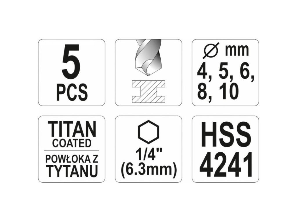 Sada vrtákov 5 kusov HSS Ti držiak vrtákov YATO