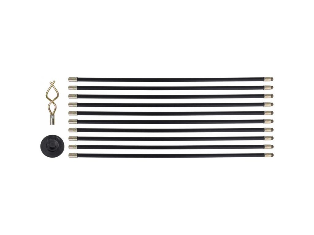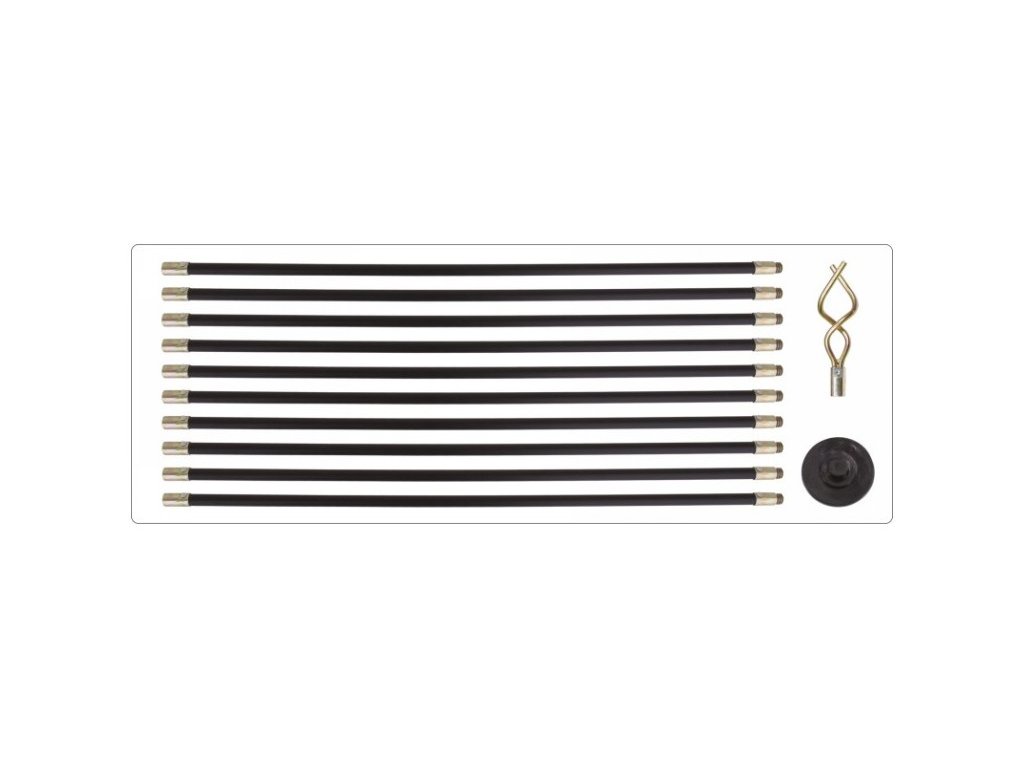 - a készlet tartalmaz: 10 darab rúd, kerek gumi vég 10 cm átmérővel és 6 mm vastagsággal, menettel végződik, spirális vég 16,5 cm hosszúsággal és 7 mm átmérőjű rúddal, szintén menettel végződik