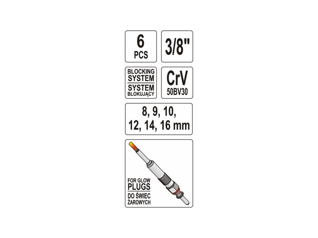Sada kľúčov na žeraviace sviečky 3/8´´ 6 kusov