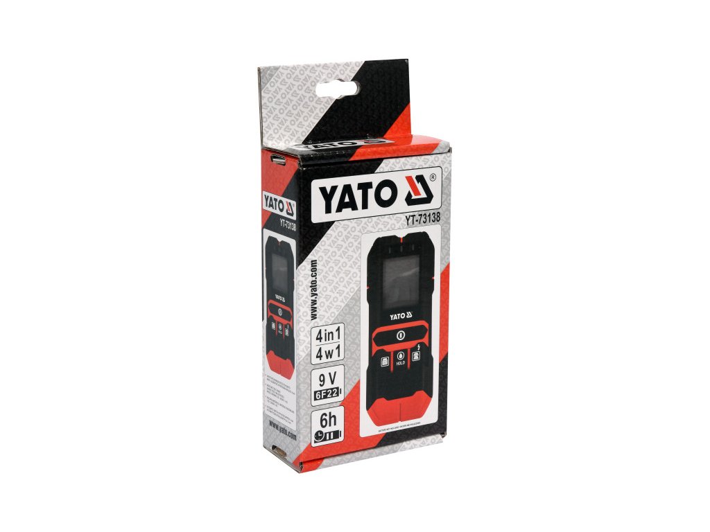 A YATO YT-73138 4 az 1-ben detektor és mérő használata jelentősen felgyorsítja a munkát, növeli a biztonságot és minimalizálja a vakolat alatt elhelyezkedő elektromos vagy vízvezeték rendszerek véletlenszerű károsodásának kockázatát. Ennek köszönhetően többek között biztonságosan fúrhat lyukat, vagy megtalálhatja a helyet, ahol egy csavart be lehet csavarni egy vakolatlap alatt rejtőző fa- vagy fémprofilba. A beépített nedvességmérő lehetővé teszi többek között a hőhidakban lévő vakolat nedvességtartalmának megállapítását, valamint a tüzifa nedvességtartalmának ellenőrzését.