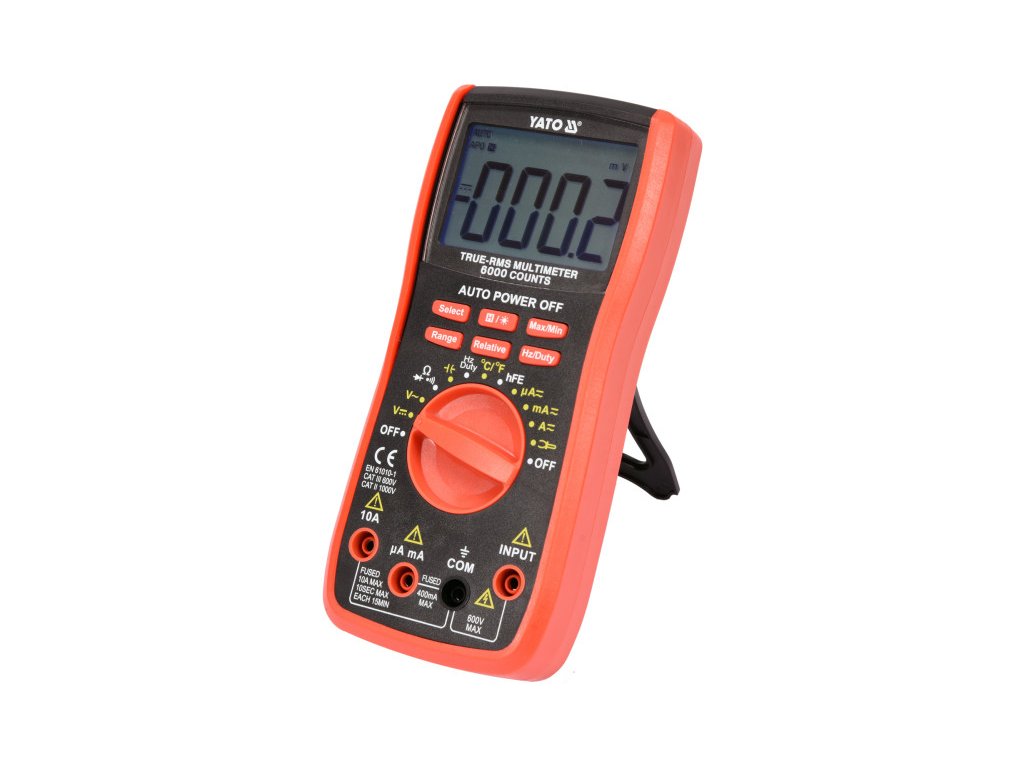 Univerzális mérőműszer YT-73085 TRUE RMS funkcióval és automatikus tartománnyal minden méréshez, amely lehetővé teszi az alap- és haladó elektromos mérések elvégzését. A műveletek gyorsaságán túl kétségtelen előnye a mérőcsipeszek formájában kínált további tartozék használata, például a YT-73090 nagy áramok méréséhez.