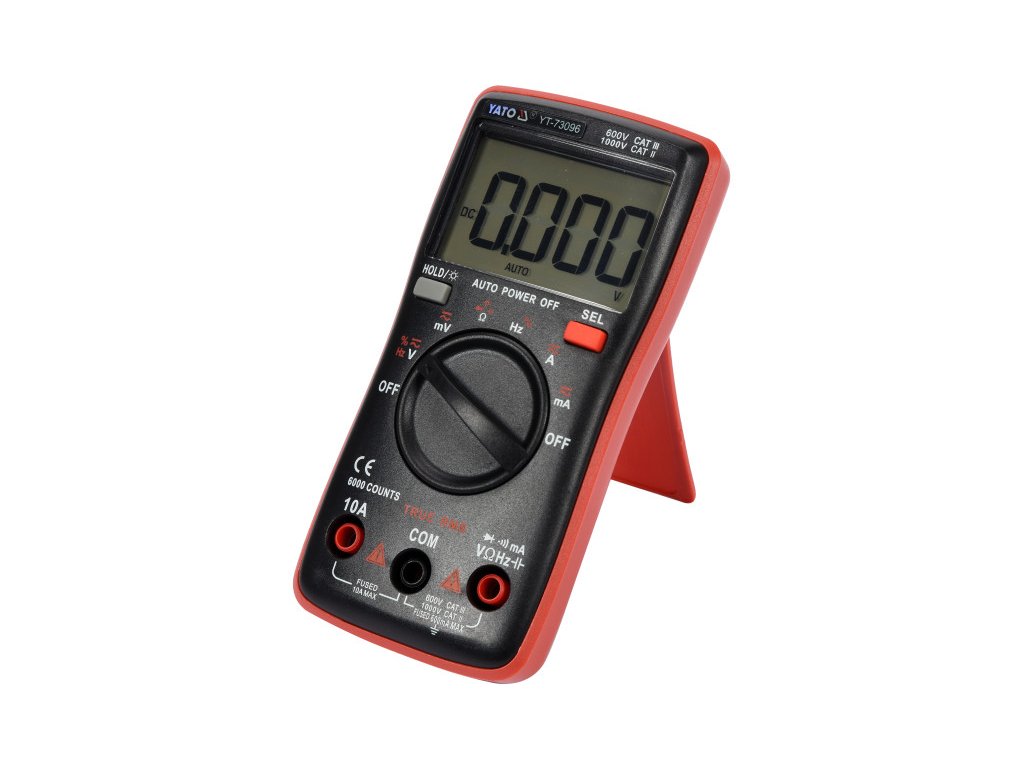 A YT-73096 univerzális mérő, TRUE RMS funkcióval és automatikus tartománnyal minden méréshez. Lehetővé teszi az alap- és speciális elektromos méréseket. A népszerű ház, a kis méret és a nagy, világító kijelző magas mobilitást biztosít a munka kényelmével. A sebességet, a pontosságot és a jelzések ismétlődését a multiméter a modern vezérlőlap vezérlésének és a magas minőségű mérőszondáknak köszönheti, melyek méretét és pontosságát mind a hobbi, mind a professzionális szerviztechnikusok értékelni fogják. Alap mérések: váltakozó feszültség mérése: A.C. 0-750V, TRUE RMS DC feszültség mérés: D.C. 0-1000V AC MIDEMENT: A.C. 0-10A, TRUE RMS DC mérés: D.C. 0-10A ellenállás mérés: 0-60mΩ dióda teszt: IF 5MA, UR 3V kerület folytonosság teszt: 0-50Ω További mérések: kondenzátor kapacitás mérése: 0-9.999MF Frekvencia mérés: 0-9.999MHz Töltési tényező mérés: 1-99% pontosság AC váltakozó áram mérésének pontosságának meghatározása példa. Számítások a mérési eredményhez: 235V A YT-73096 mérő pontossága ezen a tartományon: ± (1.0% + 3), 0.1V felbontás mérési hiba számítása: (mérési eredmény x 1.0%) + 3 x Felbontás számítás: (235 x 1.0%) + 3 x 0.1 = 2.35 + 0.3 = 2.65V A tényleges eredmény a mérési hiba figyelembevételével jelölve & nbsp = 12 ± 0.09V Az eredmény, figyelembe véve a mérési hibát a váltakozó áram mérésének jelöléséhez: 8a = 8 ± 0.15a, a felbontás és pontosság táblázata a méréshez a felhasználói kézikönyvben található. Beépített TRUE RMS funkciók - egy mérő ezzel a funkcióval kiszámítja a valódi effektív értéket a váltakozó áram és intenzitás számára, mind a szinuszoidális, mind a nem szinuszoidális mérföld számára. Az eszköz először méri a tényleges szinuszoid értéket több intervallumban → Ezután a mérési eredményeket négyzetre emeli → összegzi őket az átlagban → kiszámítja → és végül az átlagos elemet. A mérési eredmény a valódi effektív váltakozó áramú feszültség/áramérték, még egy deformált szinuszoid vagy négyszögletű autó esetén is - automatikus tartományegyeztetés a méréshez. Ha ismeretlen értékeket mérünk egy manuális tartományváltóval rendelkező mérővel a gomb segítségével, a méréseket fokozatosan kell elvégezni a legnagyobb tartományból az eredmény legpontosabb tartományáig - különben kockáztatjuk a készülék károsodását. Azonban egy autó funkcióval rendelkező multiméter esetén csak egy mérést kell elvégezni, és a mérő automatikusan megtalálja az optimális tartományt. A mérő alapértelmezetten Auto Sel módban indul - mérési mód változtatása, pl. AC feszültség méréséről DC adatok tartására - a jelenleg mért érték viselkedése a kijelzőn. ellenállás 50Ω alatt. Lehetőség dióda tesztek és kerületi folytonosság bekapcsolására. A készletben 14,5 cm hosszú mérőszondák, a csatorna hossza szondákkal: 97 cm kábel átmérője szigeteléssel: 3,5 mm túlterhelés elleni védelemmel ellátott konstrukció ABS műanyag házazat automatikus kikapcsolás a mérőről 15 percnyi inaktivitás után Lehetőség az eszköz automatikus kapcsolási módjának kikapcsolására alacsony akkumulátor szint tápellátás: két 1,5V-os elem (AAA)
