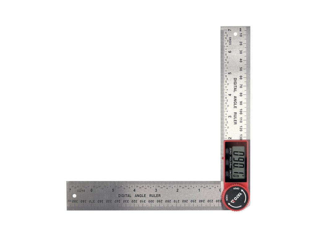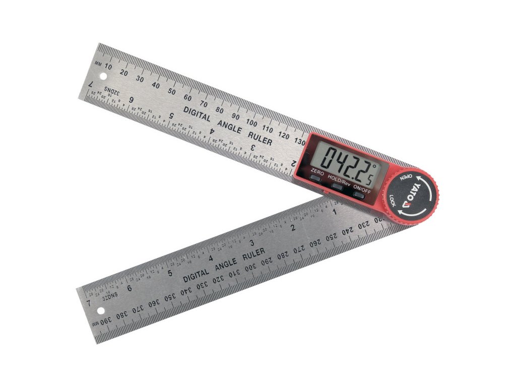 Elektronikus szögletmérő 200 mm hosszúságú karokkal.