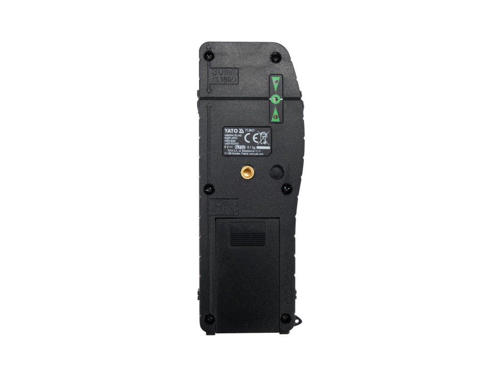 Zöld lézerfény érzékelő, mely hangszóróval és LED-ekkel jelzi a lézerfény érzékelését. Az YT-30417 és YT-30419 lézerekkel működik.