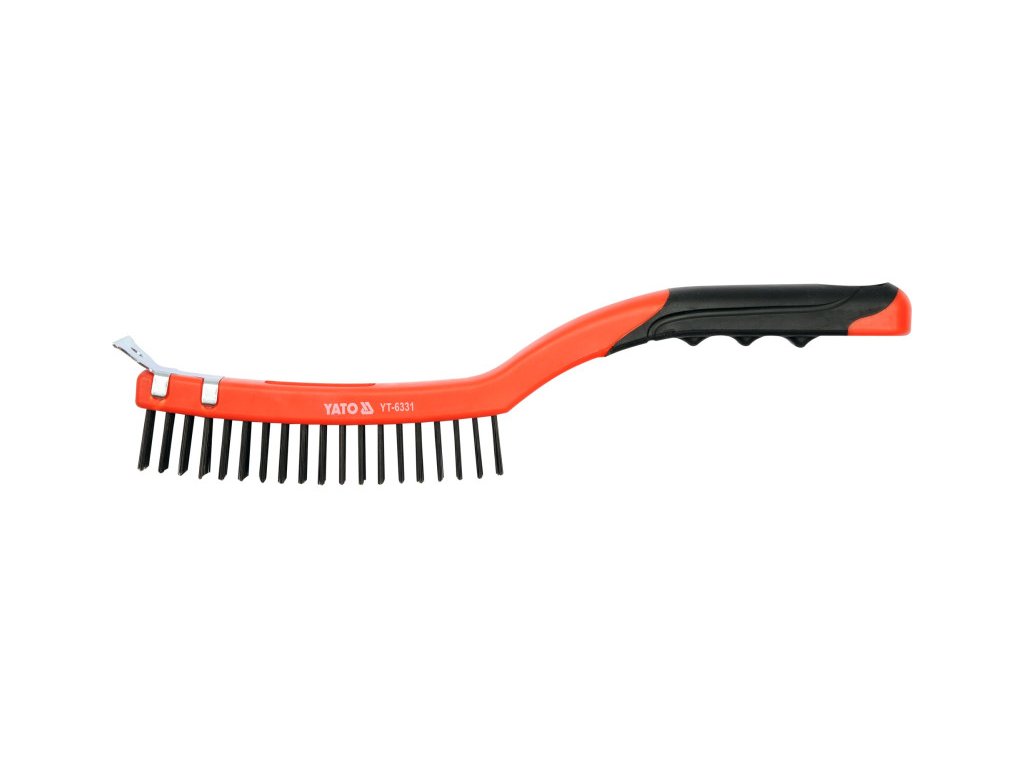 Műanyag testbe állandóan beágyazott horganyzott rugóacélból készült. A kefe vas kaparóval van ellátva a makacs szennyeződések eltávolítására, növelve a tisztítási hatékonyságot