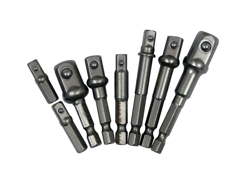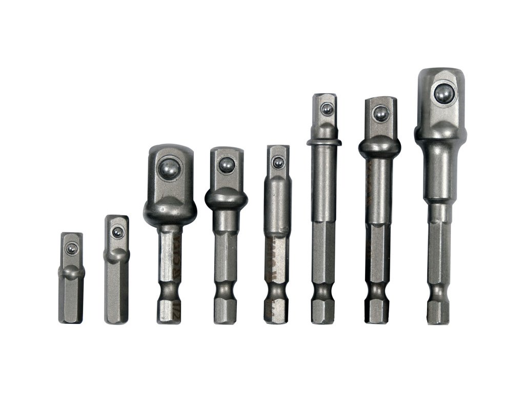 8 darabos hatlapú adapterkészlet, feketedett, tartós acélból készült foglalatokhoz.
