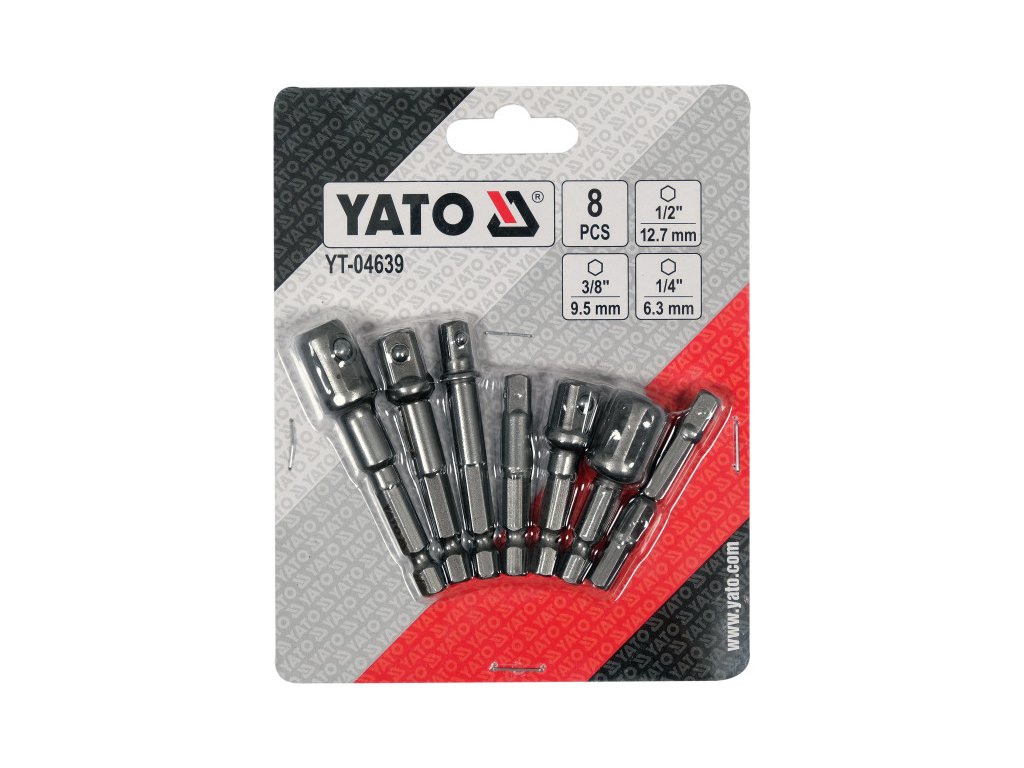 YATO súprava adaptér hlavíc 8 ks, 1/4” Hex -> 1/4”, 3/8”, 1/2” štvorhran CrV