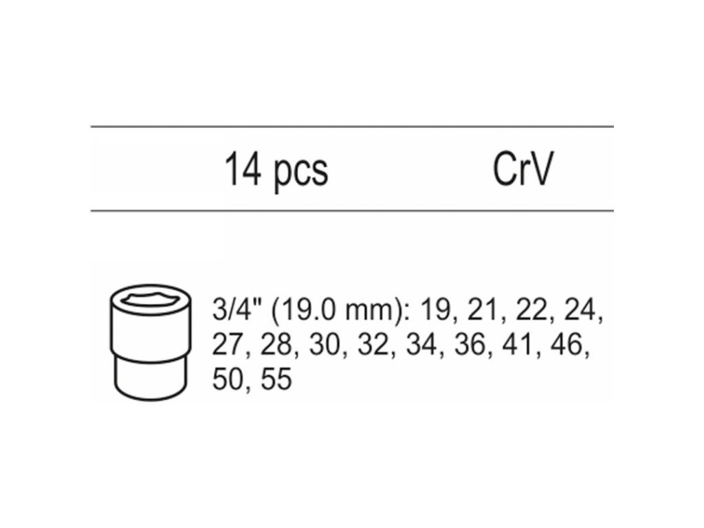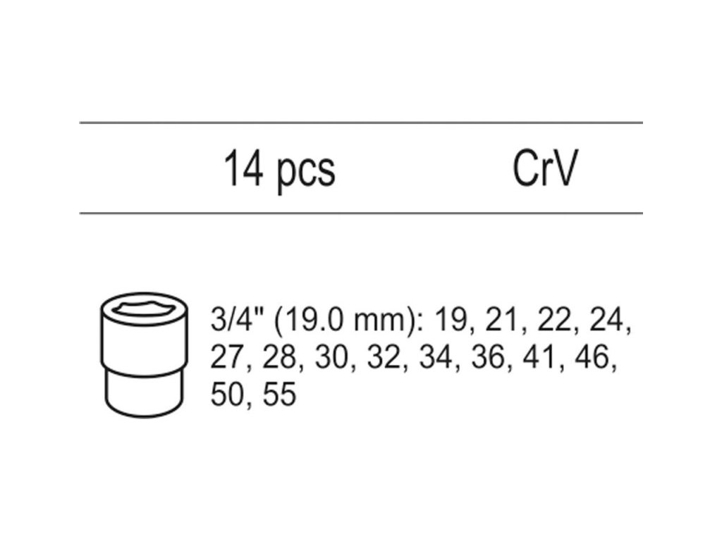 Sada nástrčiek 14 kusov 3/4" 19-55 mm CrV YATO