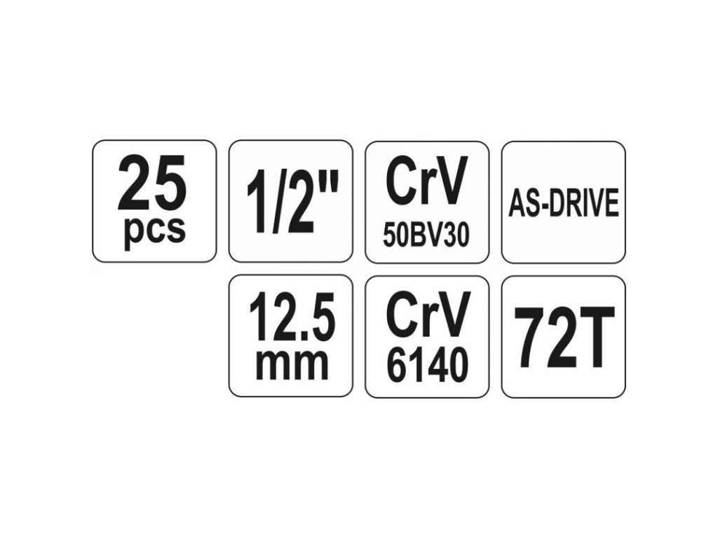 Sada nástrčiek 25 kusov 1/2" 10-32 mm CrV YATO
