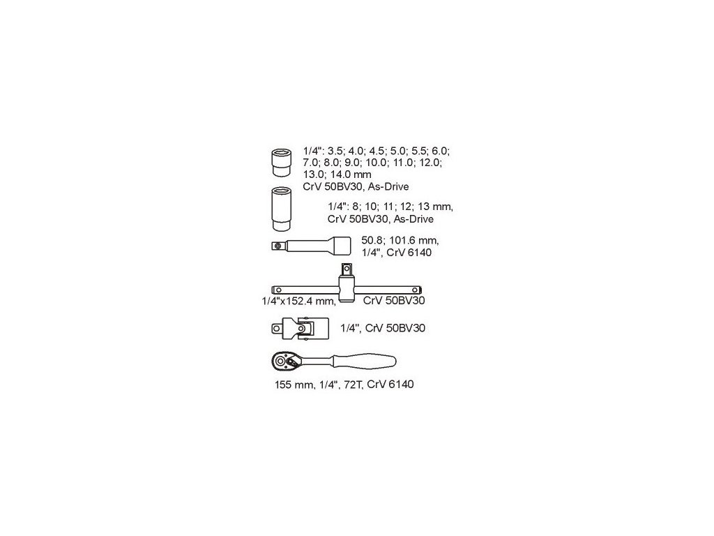 Sada nástrčných kľúčov YATO 25 kusov 1/4 3,5-14 mm CrV (vložka do zásuvky)