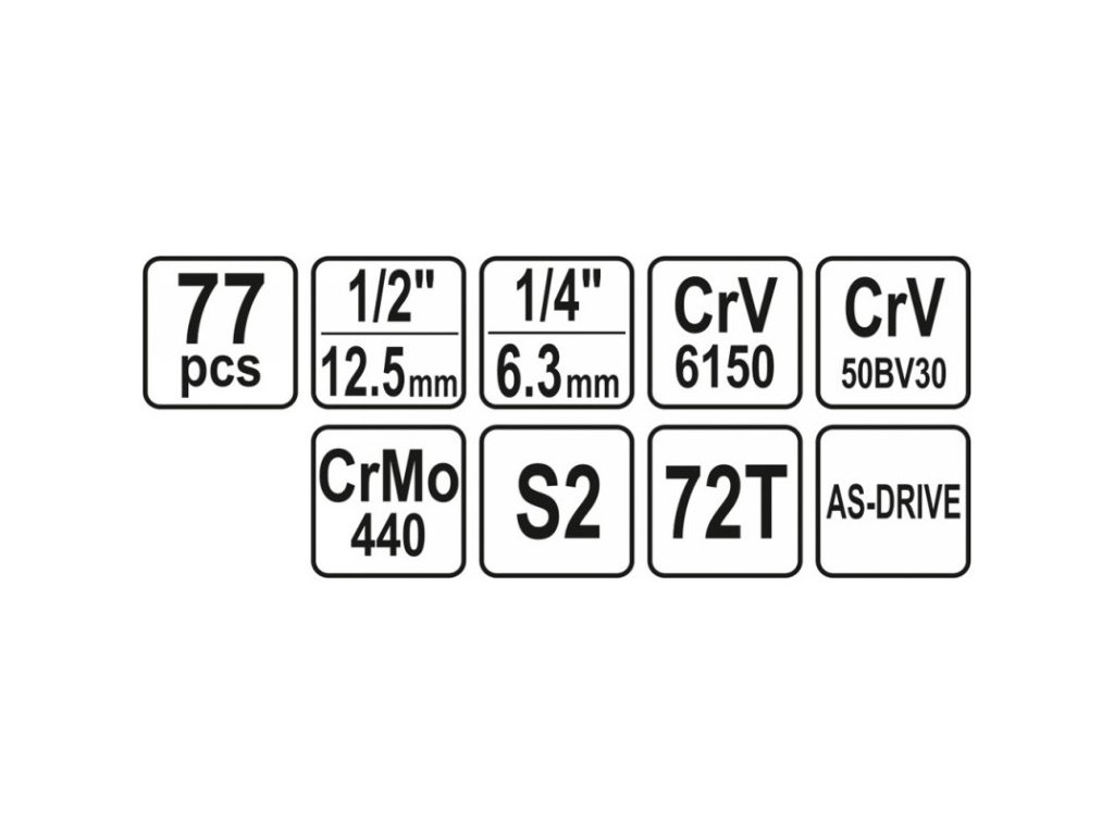 Sada nástrčných kľúčov YATO 77 kusov 1/4, 1/2 CrV
