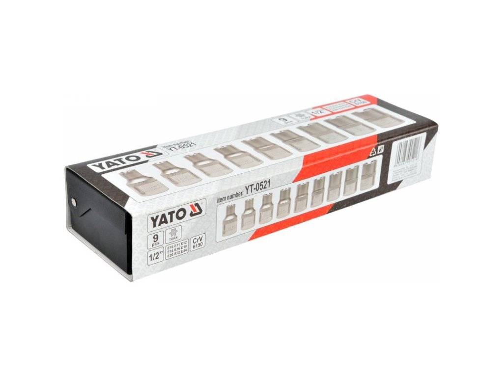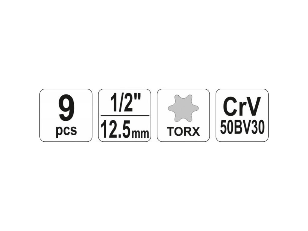 Sada nástrčných kľúčov 9 kusov vonkajších kľúčov Torx 1/2" E10-E24 CrV YATO