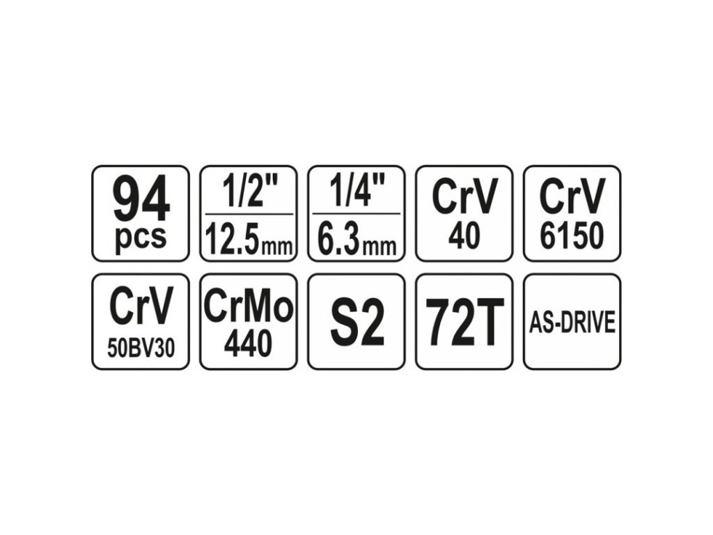 Gola sada 1/2”, 1/4” + príslušenstvo 94 ks