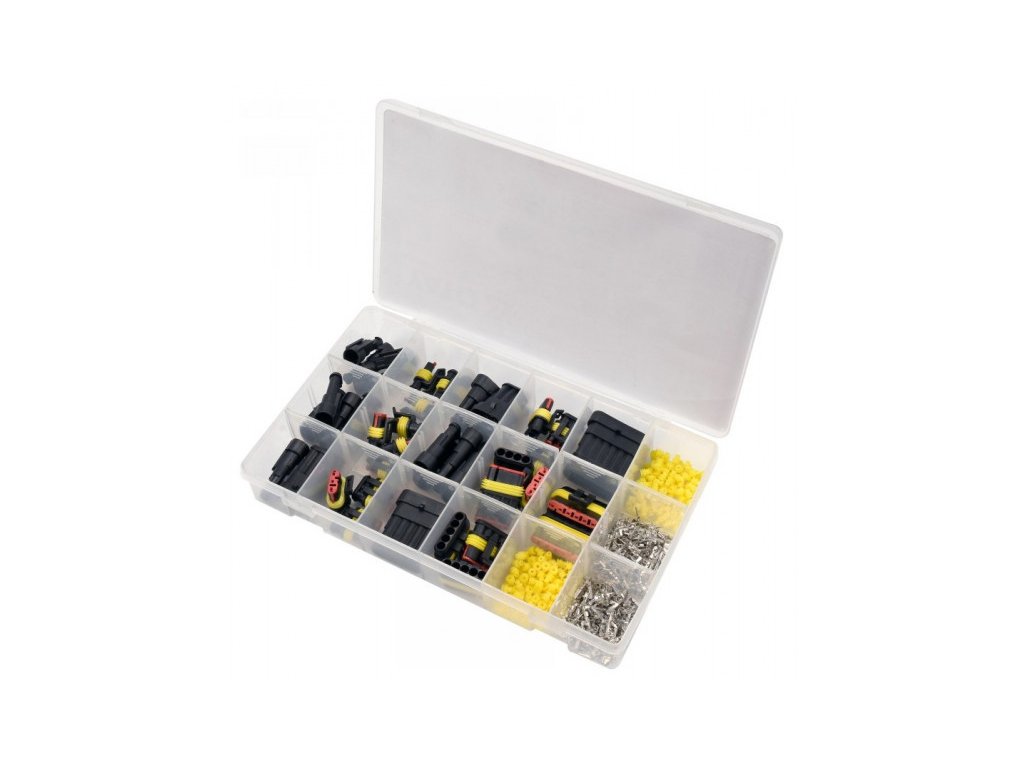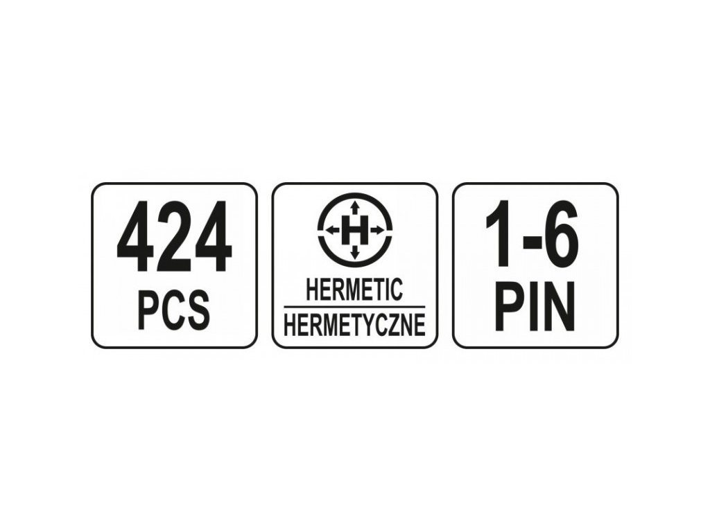 424 darabos hermetikus csatlakozókészlet 6 méretben, hogy illeszkedjen a leggyakoribb vezetékátmérőkhöz. Használatos az autóiparban, például autókban található szenzorokhoz és eszközökhöz. Nagyon jó szigetelést és tömörséget biztosít.