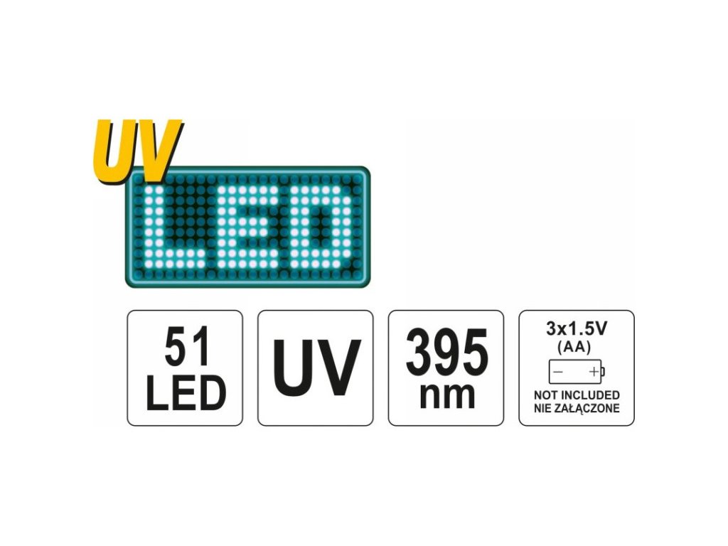 YATO Nabíjacia UV baterka + okuliare 3 x AA