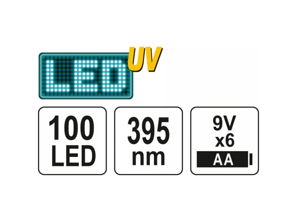 - Ledek száma: 100 UV LED biztosít nagyon erős fényt a szivárgások észleléséhez
