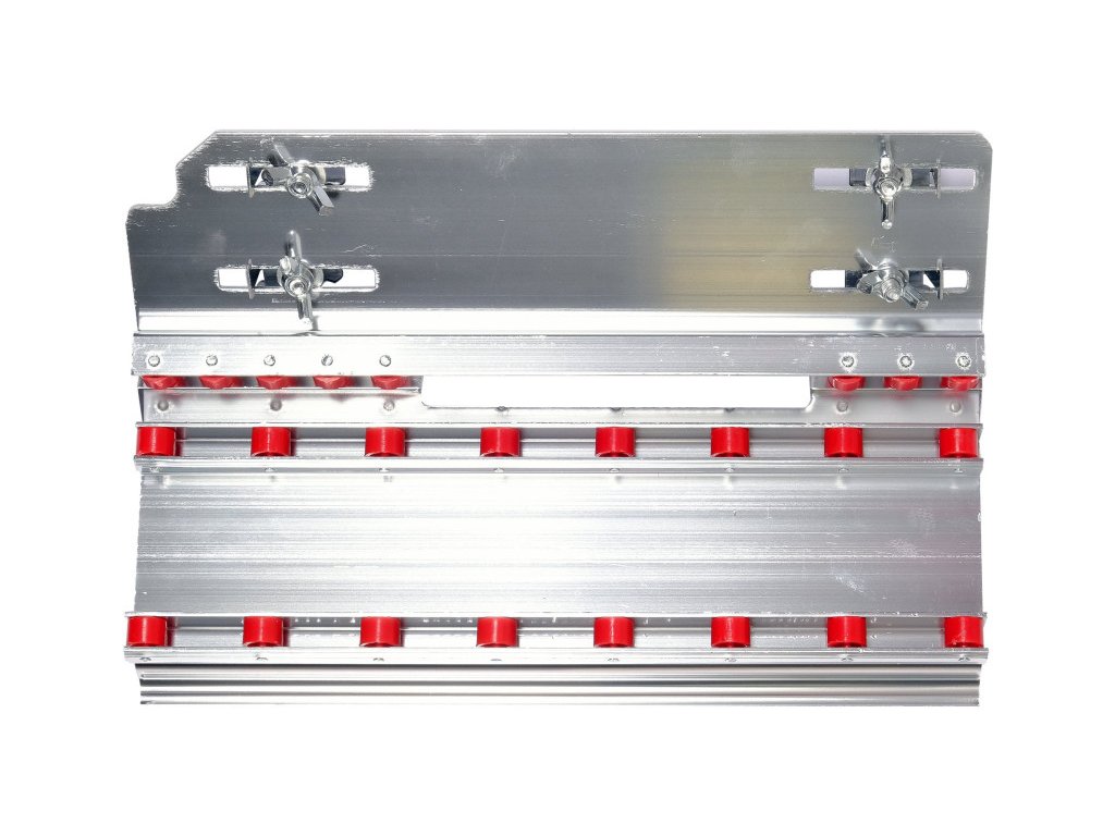 Az útmutató testét alumíniumból készítették, és műanyag görgőkkel szerelték fel a döntött lap sima csúszásának megkönnyítése érdekében.