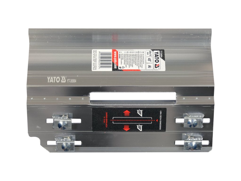 Az útmutatót úgy tervezték, hogy a lemezt pontosan pozicionálja a szél 45°-os szögben történő csiszolásakor. A csiszolást szögcsiszolóval vagy más eszközzel végezzük.